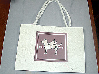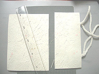 ただ白い紙袋だとショップの紙袋っぽくないので(ショップの紙袋っぽくしたいんですよ(汗))、うちのサイトのマークを10cm角に2つプリントアウトして、形に沿って定規とナイフで切り落とします。 |