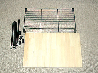 材料は、黒い方は100均の組み立て式の棚のキットで、木の板はホームセンターで買ってきた棚の板です。