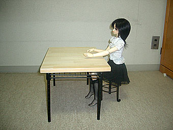 人間用の(うちの)机の高さは74センチなので、SD用の机の高さは25cm位あればいいかなぁと思ってたら、ちょうど棚の柱は25センチでした。椅子が少し高いので、上に厚み1.5センチの板を乗せたらちょうどでした。 |