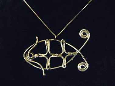 1作品目は「銀線の扱いに慣れる」ということで、銀線を焼きなまして、両端を溶かして銀玉にし、指輪を作る、という物でした。この作品はその応用として、「銀線を使って好きな形のペンダントトップを作ってみよう」という課題で作りました。
